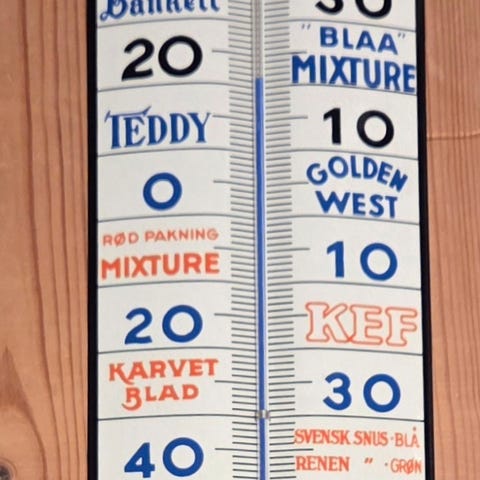 TIEDEMANNS GRADESTOKK. EMALJE SKILT. SKILT. EMALJESKILT. TOBAKK. TERMOMETER.