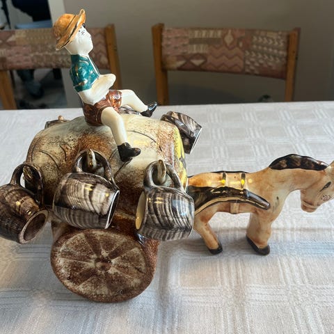Samleobjekt - Seiler figur / snapsflaske med glass Schafer og Vater