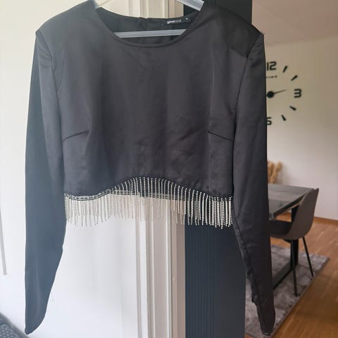 Kjempefin overdel til fest i størrelse 46 selges 150kr Kan sendes med Post Nord for 69kr om du betaler for det. Gå gjerne også inn i ruta nedenfor teksten her hvor navnet mitt og vurderinger står, trykk på den og du vil få opp andre annonser som jeg også har på Finn 😊