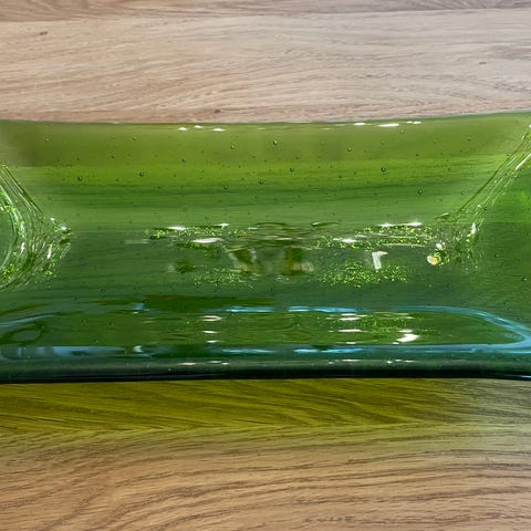Brevpresse / figur i glass. Ser ut som et isberg.