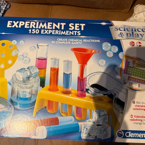 Lek og eksperiment på en morsom og trygg måte! Lær nye ting med boksens varierte utstyr, inkludert hvordan du deler vann inn i bestanddelene (hydrogen og oksygen). En illustrert manual med morsomme bilder og fakta er også inkludert. Alle delene av settet er plast. Fra 8 år