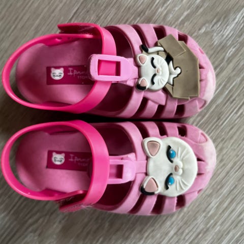 Skinnsko og sandaler i størrelse 19. Synlig brukt, men fortsatt mye bruk igjen.