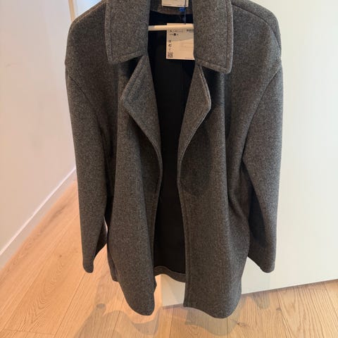 Fin jakke i ull, str. xs/s. Ikke brukt. Stoffet glitrer litt, prøvde å få det med på bildene. Ny pris ca 1000 kr.