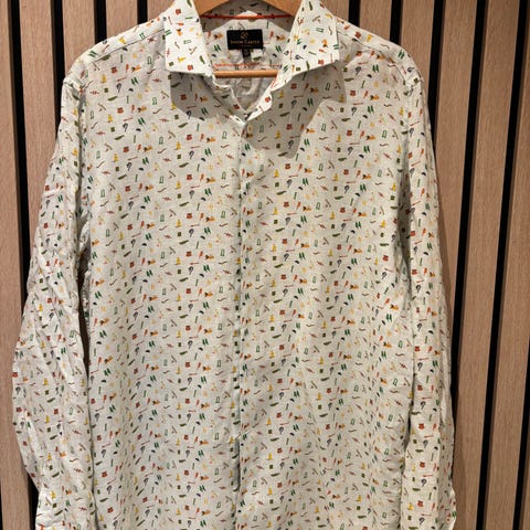 Stilig og flott skjorte. Hvit i bunn, tøft blomstermønster i litt retro fargepalett! Se gjerne mine andre annonser og få evt andre varer med til samme fraktpris.
