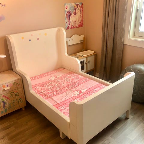 Brukt av ett barn. Vi har brukt madrassbeskytter på senga og den er dermed godt ivaretatt. Ingen skader og i veldig god stand.