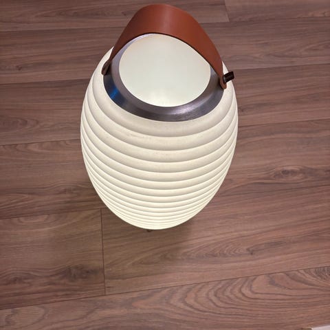 Denne har bluetooth ., dimbar lys.. oppladbar..