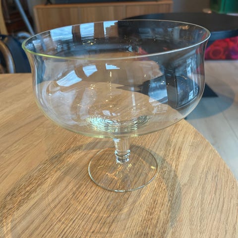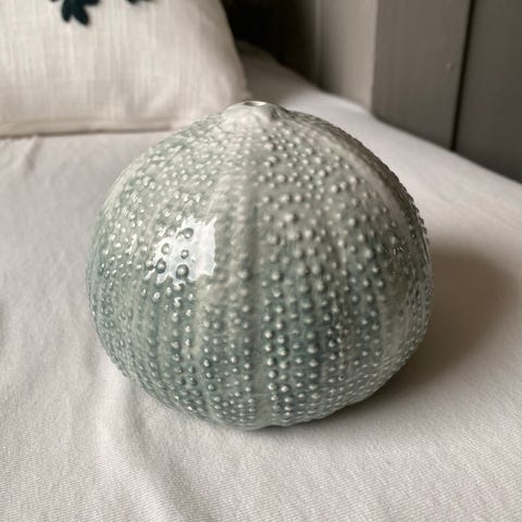 Bolle i pleksiglass (?) med skjell etc. 25.5x 25.5 cm, høyde 8.3 cm