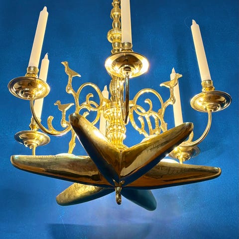 Rundt fat i messing med en flat side så at det kan stå. Diameter 58cm.