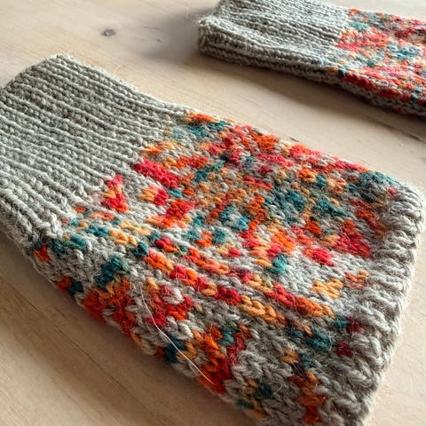 ♦️De er strikket i lett-lopi og alpakka garn.