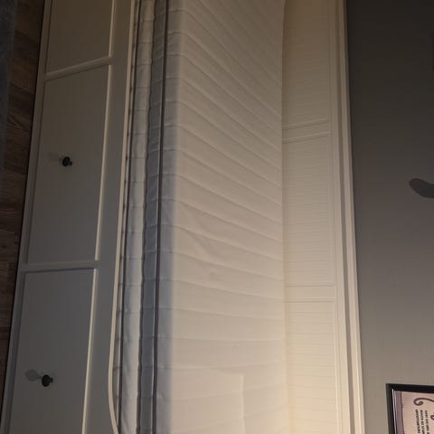 Selger hvit Hemnes dobbeltseng 180 cm bred. Sengen er kuttet litt ved hodeenden for å passe under vinduet. Sengen er pent brukt og i god stand, sengebunnen også. Hvis det er ønskelig med madrasser kan disse evt også kjøpes. Vi demonterer før henting.