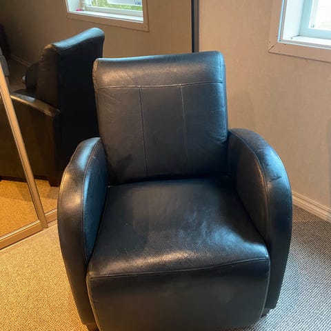 Strøken flott Tomcat stol med sort skinn. Ser veldig bra ut. Lyser opp i en hver stue!!! Blikk fanger