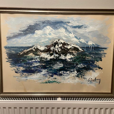 Søkeord: Bilde, kunst, lerret, ramme, oljemaleri, canvas, maleri, interiør, dekor, dekorering, veggpynt, vintage, retro, gammel, flyttesalg,