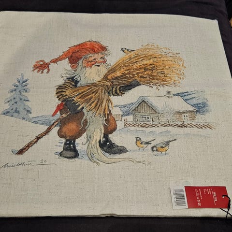 Utrolig sjarmerende gammel håndbrodert juleløper i tynt stoff. I super stand for alderen. 60x30 cm.