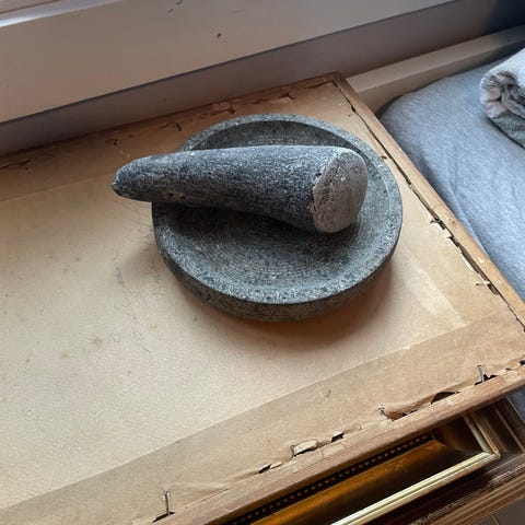 En spesiell gammel og stor morter, kjøpt for mange år siden i Danmark. Veier 2,7 kg!