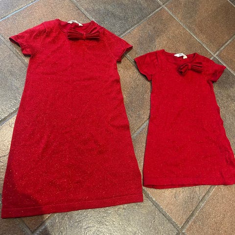 To stk søte kjoler med sløyfe i livet selges med fin jakke. Perfekte julekjole til søstre.