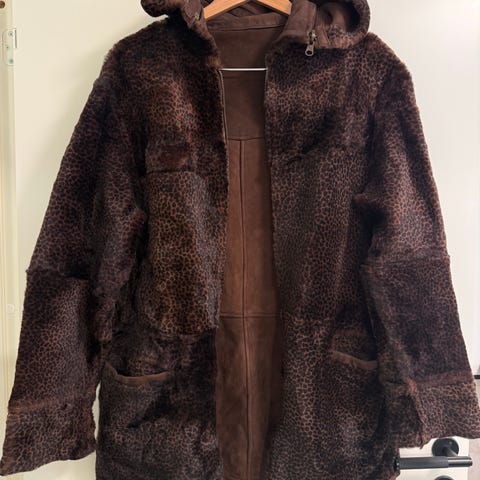 Kåpen har en krage i skinn som kan tas av/festes med knapper. Lite brukt og i veldig god stand.