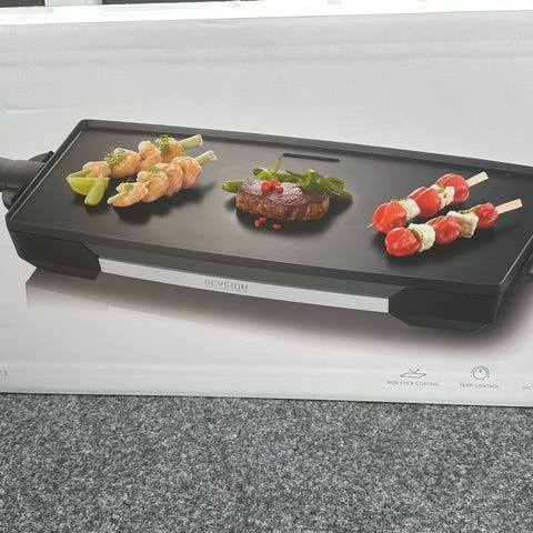 Nesten ubrukt raclettejern selges. Stort og fint raclettejern til åtte personer. Jernet har duo grillplater (halvdel i naturstein og halvdel i non-stick-belegg), samt åtte separate non-stick-mini raclettepanner slik man kan fylle på med eget ønske.