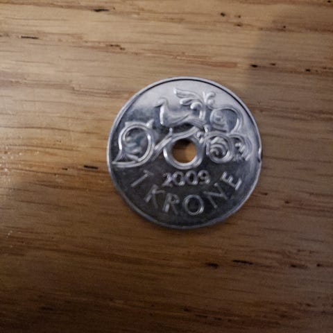 Det finnes derfor en uendelighet av varianter av denne typen revers/bakside. Derfor et morsomt og billig samleområde. Mynten er 18mm og veier 2,75 gram.