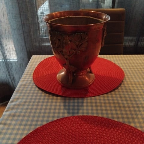 Rund rød fin duk 150 i diameter. Har ikke lenger rundt bord - så da kan andre få gleden av duken. Ingen flekker, som ny.