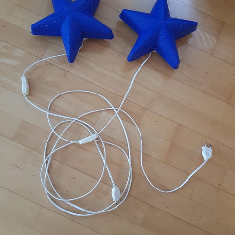 Kul lampe med "Spinnelsvev og edderkop" - gir morsomt mønster på veggen.