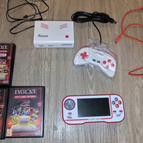 Artig sak. Går på 3 x AA batterier. Skrus på, kobles inn i scart-adapter(følger ikke med) og gir deg tilgang til mange gamle spill.