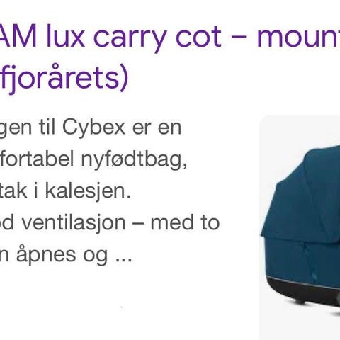 Selger vår pent brukte cybex Priam Lux Carry Cot pg av overgang til sittedel. Brukt i ca 5 mnd. pent brukt ingen skader eller lignende