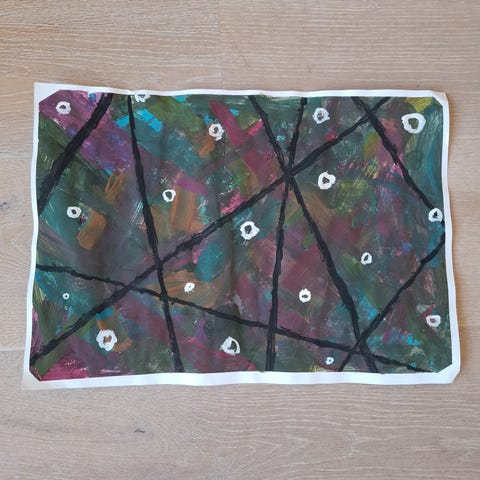 Et stykke vevet av en lokal tibetansk kvinne. Kjøpt i Tibet. Helt fantastiske farger. Tett-tett vevet. Baksiden er like perfekt som framsiden. Mål: 69 x 18 cm.
