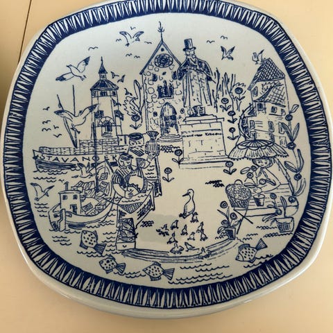 Stavangerflint tallerken med rød ring, 52