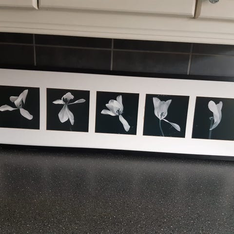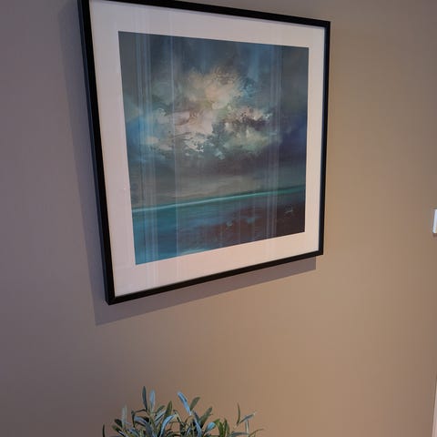 Bilde 90 x90 cm, noen små skader i overkant ramme. Selges kr 400. Sendes ikke