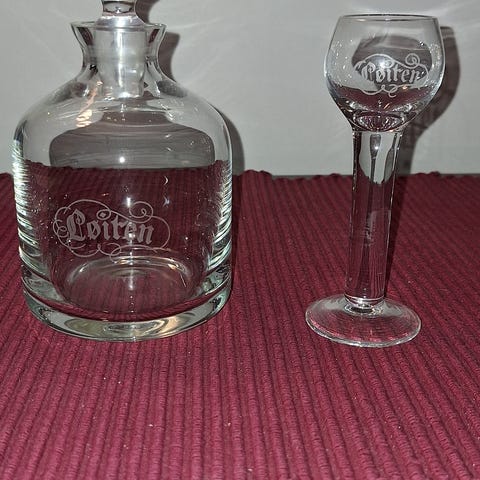 Løiten håndlaget karaffel og 7 akevitt glass 5 cl