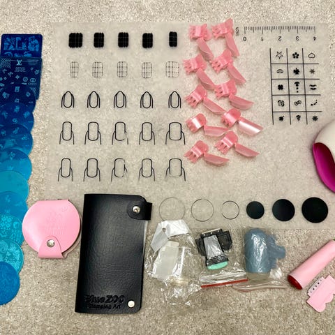Alt som du trenger til å lage stamping på negler. Kan avtale pris på eske med alt sammen. Spør om hvis du trenger mer bilder.