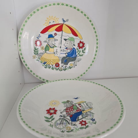 Vintage eggeglass/press glass med nisse som bære en kurv