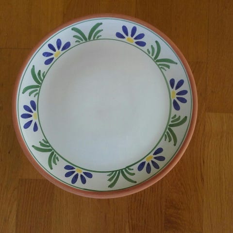Blått keramikk fat.