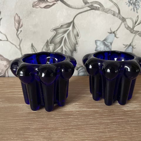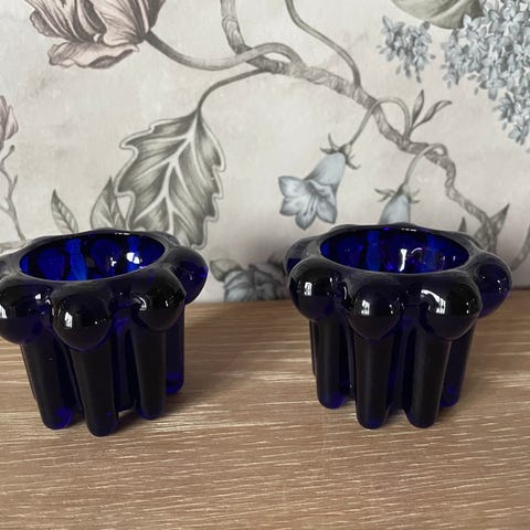 Søte vintage glass lysestaker av merket Reims (fransk). Jeg har 3stk selges for 90kr / stk.