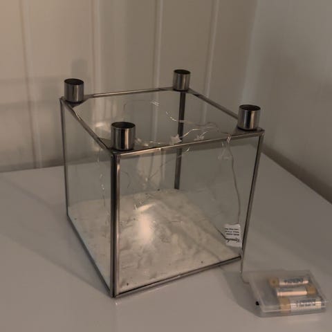 Selger en helt ny adventslysestake formet som et hjerte. Kun åpnet for å sjekke at den virket. Dessverre har en ene lille lampen knust. Kan kjøpe ny lyspære til rundt 25 kr. Ellers er lysestaken hel, og funker som den skal.