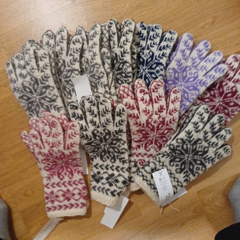 Søkeord: hansker, hanskar, strikkevanter, glove, gloves, knitted mittens, håndplagg, handplagg, hender, hand, hands, høst, vinter, høstplass, vinterplagg, ny, nye, nytt, ubrukt, new, not used, unused