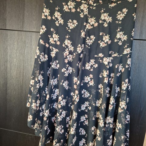 Svart skjørt med okergule, hvite blomster