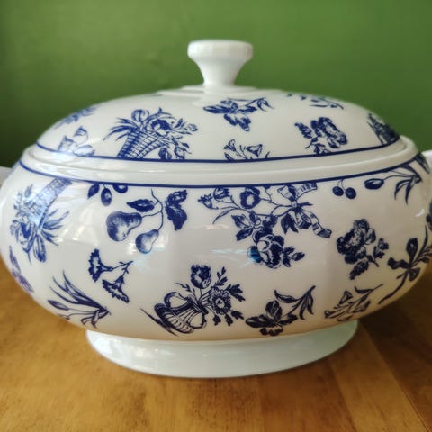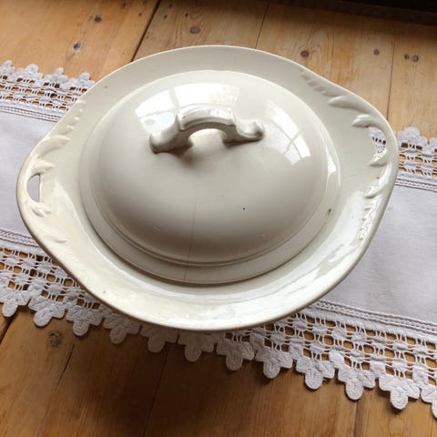 Pent brukt stor bolle/ terrin, med hank og lokk