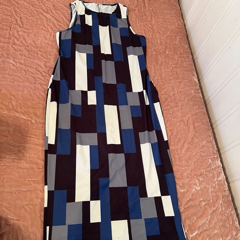 Lekker kjole i sort, beige med litt gull. Lett i stoffet og helt nydelig på.