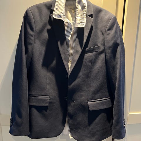 Meget pen blå dressjakke / blazer med hvit skjorte fra Lindex som medfølger. Skjorten er i str 140.