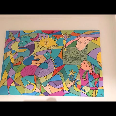 Verket er laget med markører på papir og måler 21 x 28 cm. Dette kunstverket selges uten ramme, men jeg kan ramme det inn etter avtale.