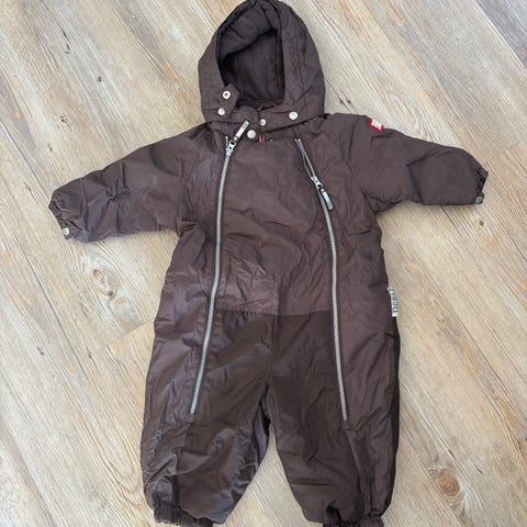 Lite brukt vogndress i fargene blå/grå/orange selges. Merke Weaterproof. Størrelse 6 til 9 mnd, (74). Brettbare klaffer på hendene og med to glidelås.