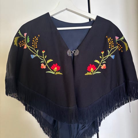 Sjal til Trønderbunad. Dette er 1m x 1m.