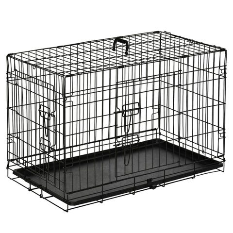 Sammenleggbart hundebur i stål med tilpasset plastbunn.