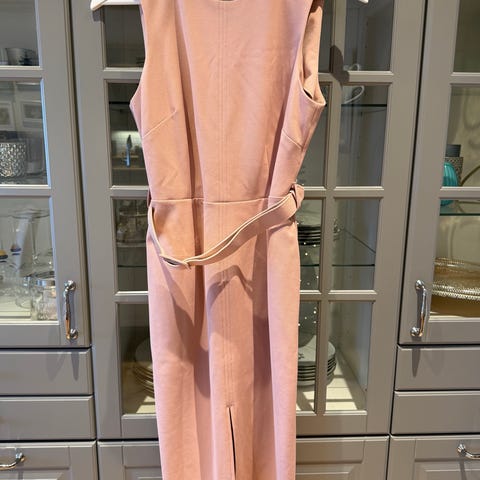 Kjole med hvite prikker fra Dorothy Perkins. Størrelse 42 fargen sort. Stoffet er jersey/bomull med litt elastan. Veldig behagelig å ha på (som kosekjole) samtidig som den ser stylig ut.