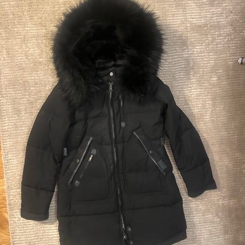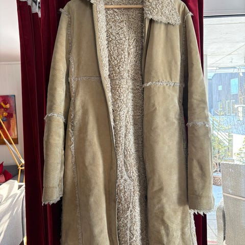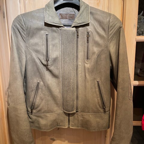 Pent brukt semsket skinnjakke fra Cedrico. Foret og gir god varme. Lukkes med hemper. Står størrrelse XL, men vil si den er 36-38. Modellen er 167 cm høy, normalvektig.