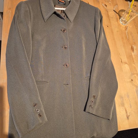 Fin koksgrå ullkåpe fra L'evolution selges. Romslig modell str 48. Innerfòr er i polyester, yttermaterialet i 100% ull. Mange fine detaljer på rygg og under arm, se bilder. To lommer, høy krage. A-fasong. Nylig renset.