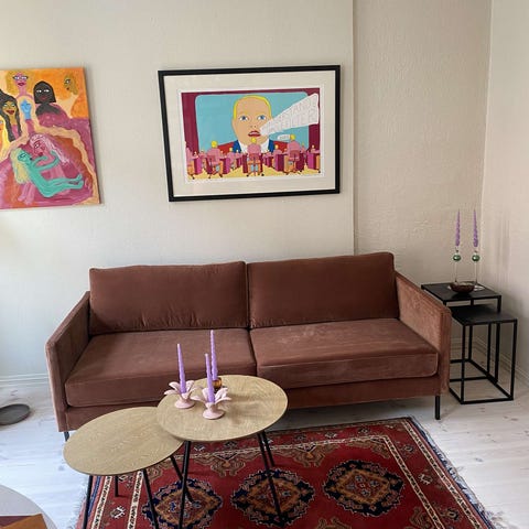 Sofaen er enkel å bære da alle putene er løse og selve rammen er enkel å bære.