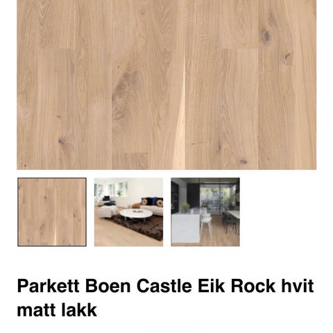 3 pakker med ny parkett som er lagret inne. kjøpt på skau i Sandnes. Merke; Boen white stone Oak.