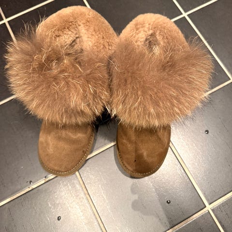 Varme vinter støvler i filts lengde på innsole er 25cm.De er bestilt og laget på bestilling, ekte fuskepels.Lite brukt.Nye kostet 1500kr.Selger for 800kr+frakt postnord 69kr🌸